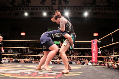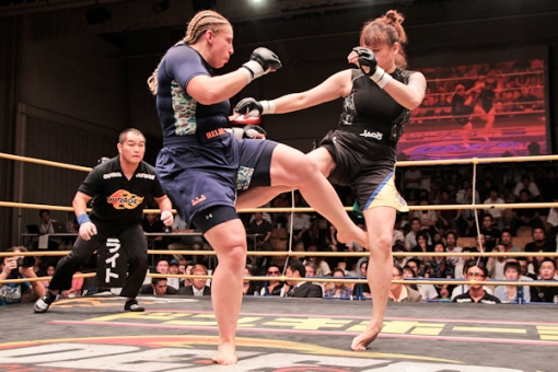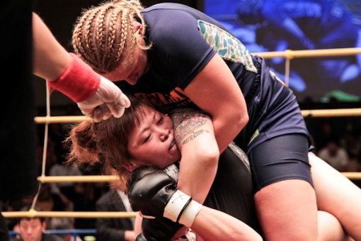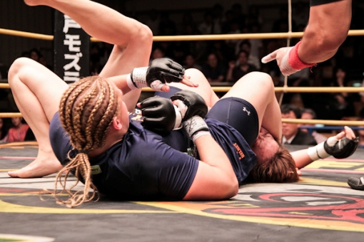 Pojedynek nie był aktorski a obie panie rzuciły na szalę wszystko co posiadały w swoim fighterskim repertuarze. Obie nie należą do tzw. drobnych kobiet więc bój obfitował na początku w mocne ciosy i kopnięcia. Pierwsza do ataku w zapaśniczym stylu ruszyła jednak Amanda i zdobyła przewagę, której uwieńczeniem była świetna dźwignia na ramię (armbar) po 4 minutach i 37 sekundach walkii Japonka została zmuszona do poddania. Tak więc pomoc Luke’a „Skywalkera” nie była potrzeba a Amanda mogła cieszyć się z drugiego zawodowego zwycięstwa w swojej karierze. Poniżej kilka zdjęć z walki: