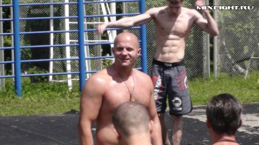 Na razie szalenie ciężko jest o materiały filmowe, ale z przygotowań zamieszczono kilka zdjęć. Wiadomo, iż Fiodor po pierwszym zgrupowaniu udał się po raz drugi do Holandii i wrócił ponownie do Kisłowodska a ostatni etap przejdzie w swojej słynnej „drewutni” w Starym Oskole. Mimo nowej sali postawionej przez Władymira Putina (nie dosłownie), Fiedia nadal lubi trenować w znanej na całym świecie „pieczarze” czyli salce gdzie jest niewiele wygód ale jest to co trzeba a w podłogę i ściany przeniknęły tysiące litrów potu. W treningach pomagają mu m.in. brat Alexander, Maksim Griszin, Kiril Sidelnikow i Wiktor Nemkow. Nad całością czuwa trener Woronow. Będziemy informować na bieżąco o stanie przygotowań Rosjanina.