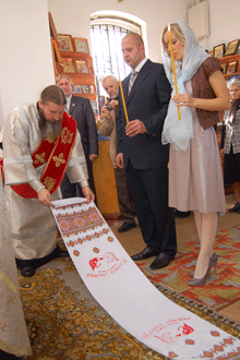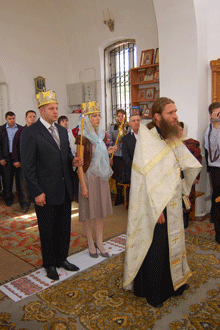 Uroczystość odbyła się w cerkwi Św. Mikołaja w Starym Oskole a ślubu udzielił młodej parze rektor miejscowej cerkwi. Na uroczystość przybył też przyjaciel i spowiednik Fiodora arichidiakon Andrei z Niżnego Nowgorodu, który życzył Państwu Młodym wszystkiego najlepszego. Co prawda Fiodor był już raz żonaty ze swoją pierwszą miłością Oksaną, ale rozwiódł się. Dodatkowo po nawróceniu się kilka lat temu, po raz pierwszy był to ślub w cerkwi.
