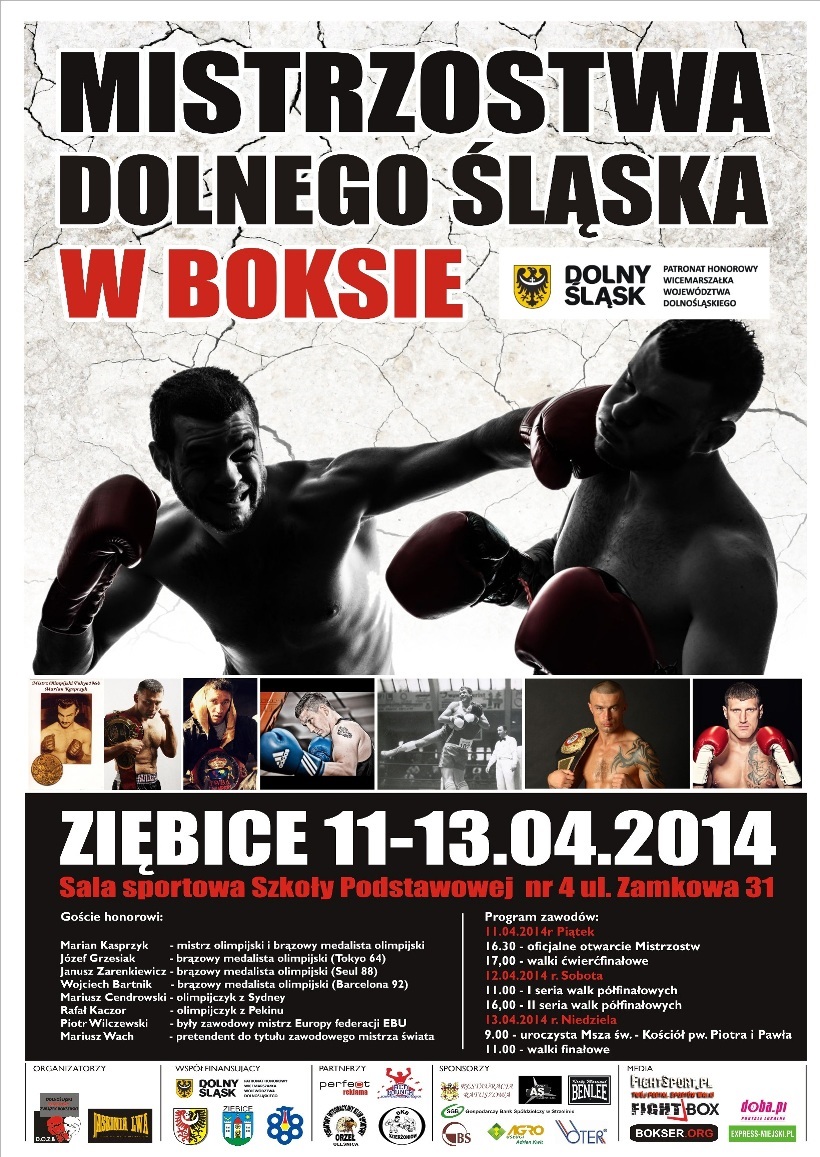 W dniach od 11-go do 13-go kwietnia w Ziębicach, odbędą się Mistrzostwa Dolnego Śląska Juniorów i Kadetów w Boksie. Jest to doroczna impreza mająca za zadanie wyłonienie najlepszych zawodników w regionie, którzy rywalizować będą o kolejne szczeble w krajowych eliminacjach i turniejach do Mistrzostw Polski włącznie. Przewidziany jest start około 100 zawodników w przedziale wiekowym 15-16 i 17-18 lat (kobiet i mężczyzn).