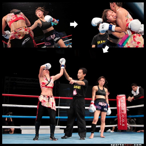 Podczas gali doszło do najciekawszej walki kobiecego Kickboxingu w Japonii. Zmierzyły się w niej mistrzyni świata Muay Thai w organizacjach WMC i WPMF Erika Kamimura i dwukrotna czempionka Shoot Boxing S-Cup Rena. Faworytką była Kamimura ze względu na dwie porażki jaki przytrafiły się Renie w tym roku. W tej walce jednak nie miało to znaczenia, bo Rena wygrała na punkty po walce, która była bardzo wyrównana choć jeden z sędziów dał przewagę Renie aż dwoma punktami. Pozostali tylko jednym. Punktacja po pięciu rundach wyglądała następująco: 45-46,46-47 i 46-48 dla Reny. Tak więc ona został mistrzynią organizacji Rise w wadze muszej (48 kg).