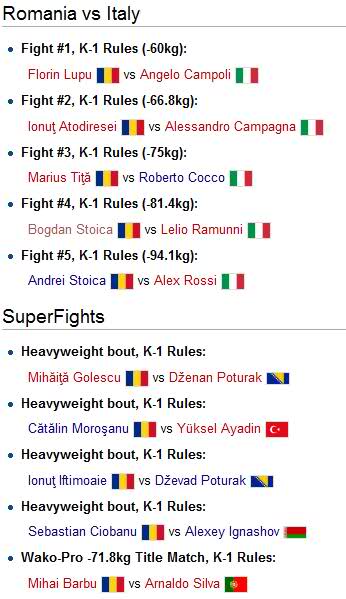 Jak sama nazwa wskazuje, będzie to robione z największą organizacją amatorskiego Kickboxingu WAKO i jej profesjonalną komórką WAKO-Pro. Konferencja w tej sprawie odbyła się ponad trzy tygodnie temu. Ogólnie mają to być walki kickboxerskie pomiędzy reprezentacjami wybranych krajów i dodatkowo atrakcyjne superfight. Jako pierwszy zorganizowany jest mecz 5-go marca Serbia – Grecja a naprawdę atrakcyjne i mocne wejście nastąpi 12-go marca starciem: Rumunia vs Włochy w dniu 12 marca w miejscowości Râmnicu Vâlcea. Poniżej prezentujemy kartę walk tej gali. Kolejne mecze to Węgry – Chorwacja w kwietniu i Rosja – Hiszpania w czerwcu.